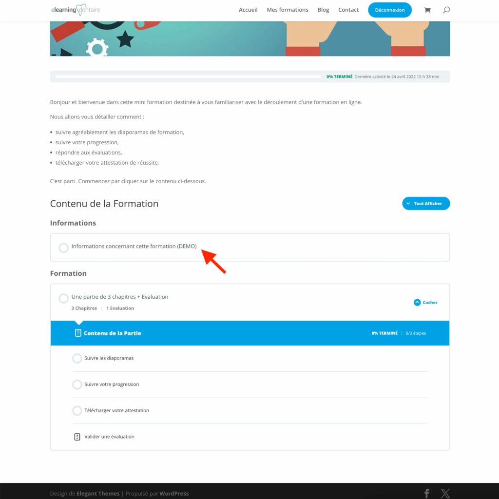 Vous pouvez également arriver sur cette page en tapant cette adresse : https://www.elearning-dentaire.com/mes-formations/