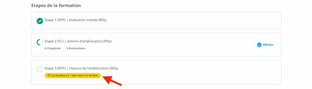 La validation des différentes étapes est fonction du contenu consulté.